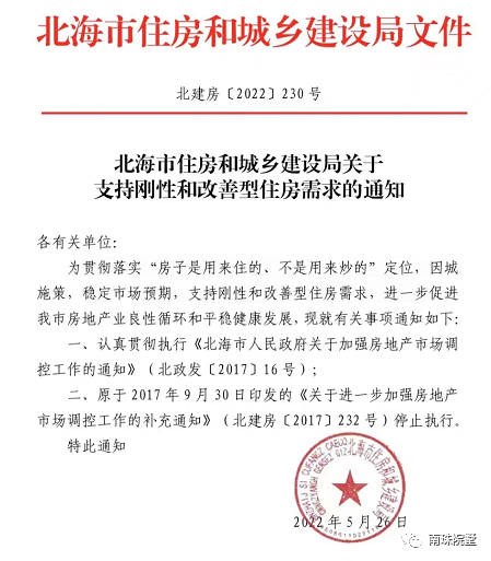 5月26日,北海楼市再出新政策,取消了2017年发布的限购政策。北海楼市宣布全面松绑。
